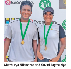 Chathurya Nilaweera partnered by Savini Jayasuriya beat Kenali Herath and Dilvan Herath 6/2 6/2 in the HNB-SLTA Clay Court Championship mixed doubles final as the tournament concluded at the SLTA courts yesterday.