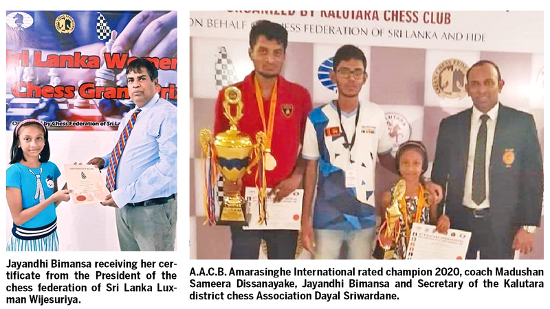 Bimansa’s extraordinary talents were noticed by Madushan Sameera Dissanayaka the current chess coach of the Bandaragama Central College and she was encouraged to take part in chess competitions by providing further training.