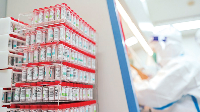 A staff member works at a COVID-19 nucleic acid testing laboratory in east China's Shanghai on Wednesday. – XINHUA