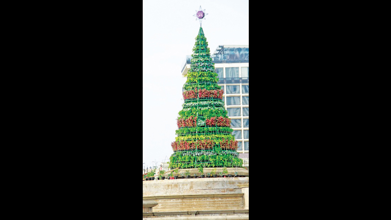 A Christmas tree made up with vegetable plants which is on display at the roundabout in front of the Presidential Secretariat has garnered public attention.Banners placed at the location encourage the public to grow vegetables in their home gardens.