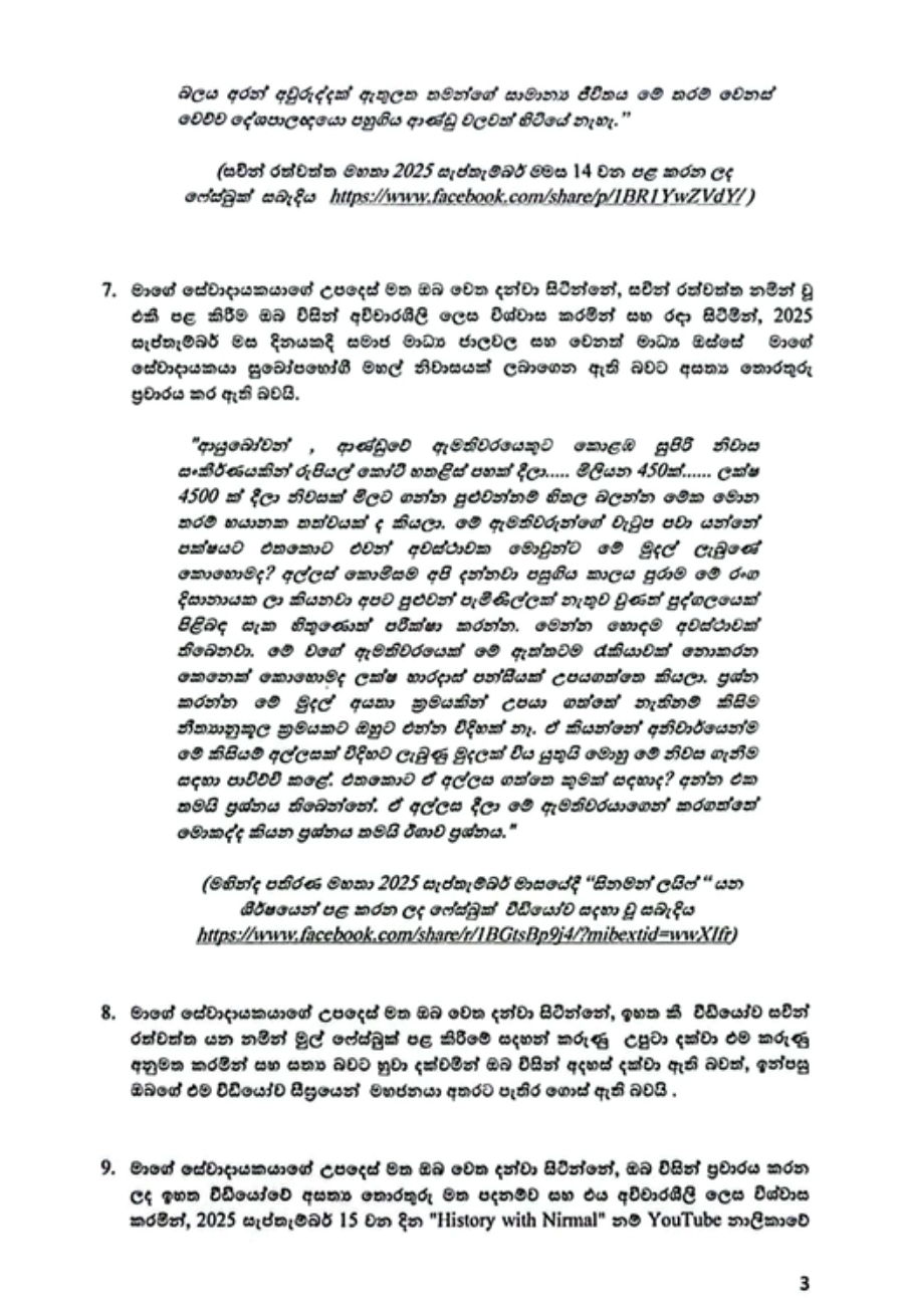Earlier, Deputy Minister Watagala lodged a complaint with the Criminal Investigation Department (CID) regarding the circulation of hateful and false statements against him on social media.