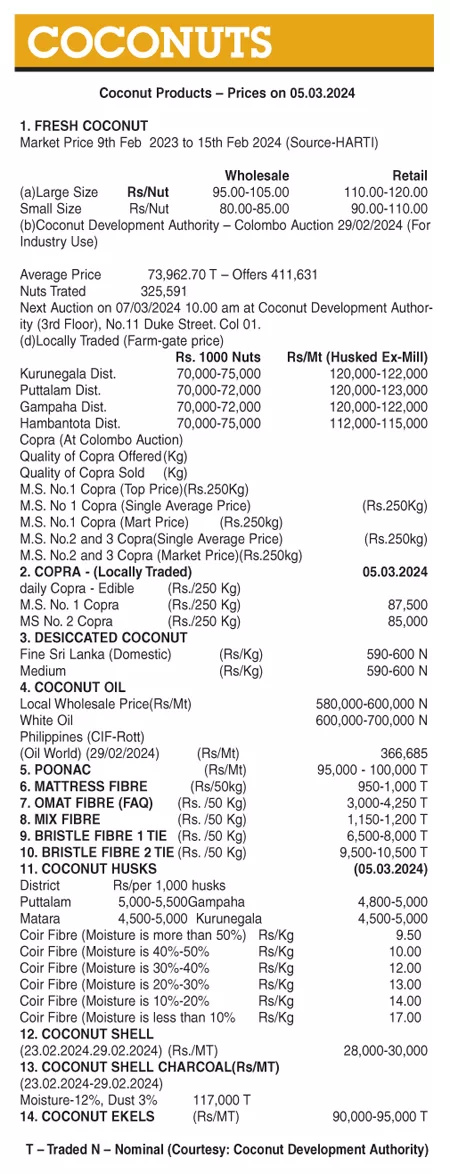 Coconut ( Coconut Products – Prices on 05.03.2024 ) Business On Mar 5, 2024 Untitled 27 1 0 4 Share The post Coconut ( Coconut Products – Prices on 05.03.2024 ) appeared first on DailyNews. 0 4 Share FacebookTwitterGoogle+ReddItWhatsAppPinterestEmail