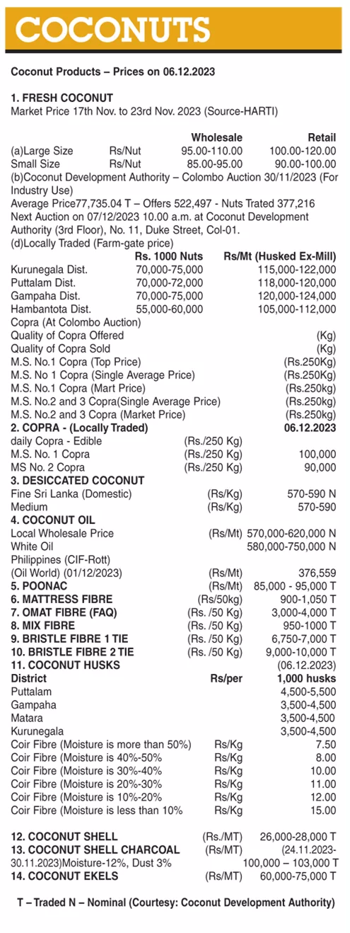 Coconut ( Coconut Products – Prices on 06.12.2023 ) Business On Dec 6, 2023 Untitled 24 1 0 9 Share The post Coconut ( Coconut Products – Prices on 06.12.2023 ) appeared first on DailyNews. 0 9 Share FacebookTwitterGoogle+ReddItWhatsAppPinterestEmail
