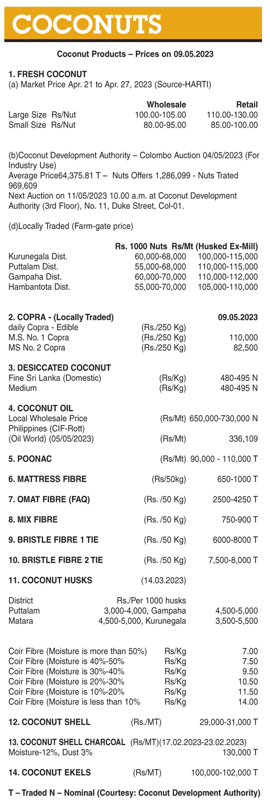 Coconut ( Coconut Products – Prices on 09.05.2023 ) Business On May 9, 2023 Untitled 56 0 57 Share Business Tags: Print Edition Coconut Wednesday, May 10, 2023 – 01:00 0 57 Share FacebookTwitterGoogle+ReddItWhatsAppPinterestEmail