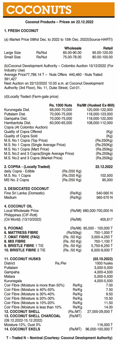 Coconut ( Coconut Products – Prices on 22.12.2022 ) Business On Dec 22, 2022 Untitled 80 0 0 102 Share Business Tags: Print Edition Coconut Friday, December 23, 2022 – 01:00 0 102 Share FacebookTwitterGoogle+ReddItWhatsAppPinterestEmail
