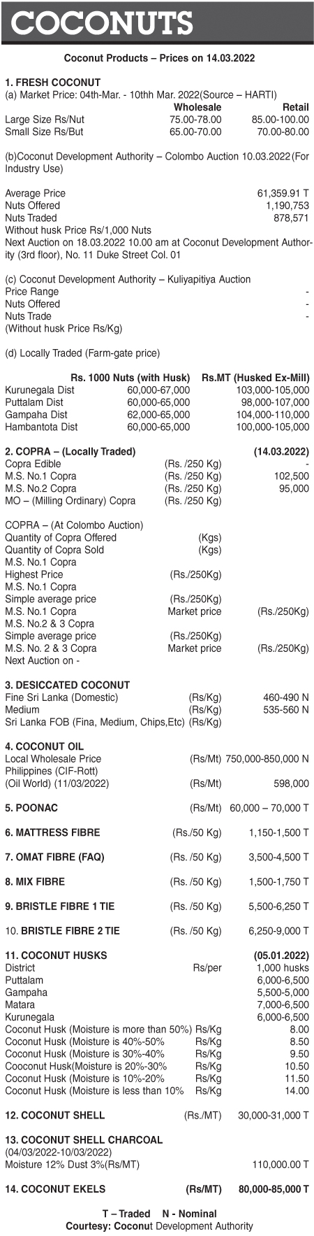 Coconut Products – Prices on 14.03.2022 BusinessLocal On Mar 14, 2022 Coconut Products – Prices on 14.03.2022 0 55 Share Business Tags: Print Edition Tuesday, March 15, 2022 – 01:00 0 55 Share FacebookTwitterGoogle+ReddItWhatsAppPinterestEmail