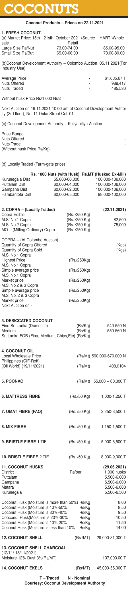Coconut Products – Prices on 22.11.2021 Local On Nov 22, 2021 Coconut Products – Prices on 22.11.2021 0 47 Share Business Tags: Print Edition Tuesday, November 23, 2021 – 01:00 0 47 Share FacebookTwitterGoogle+ReddItWhatsAppPinterestEmail