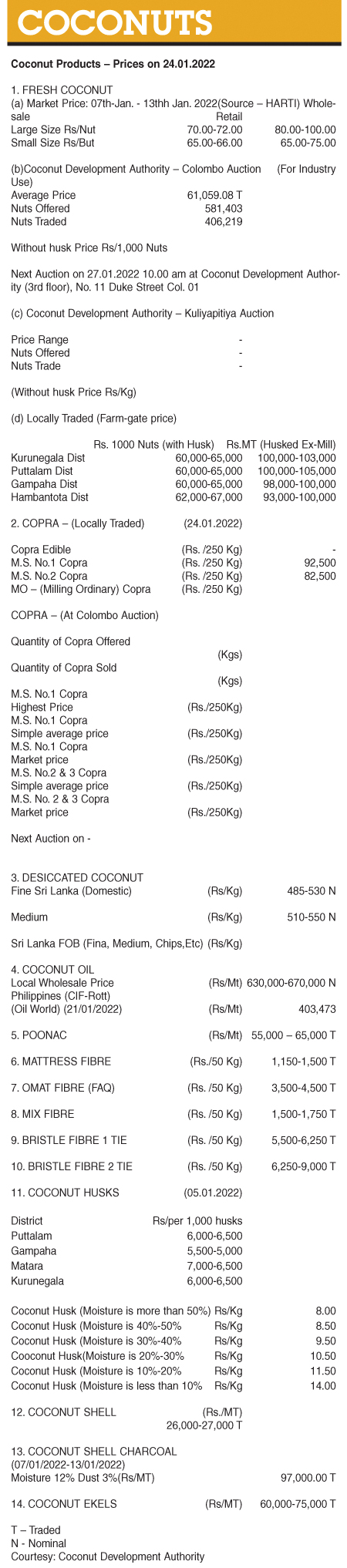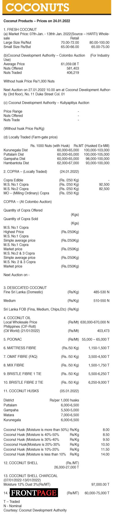 Coconut Products – Prices on 24.01.2022 Local On Jan 24, 2022 Coconut Products – Prices on 24.01.2022 0 58 Share Business Tags: Print Edition Tuesday, January 25, 2022 – 01:00 0 58 Share FacebookTwitterGoogle+ReddItWhatsAppPinterestEmail