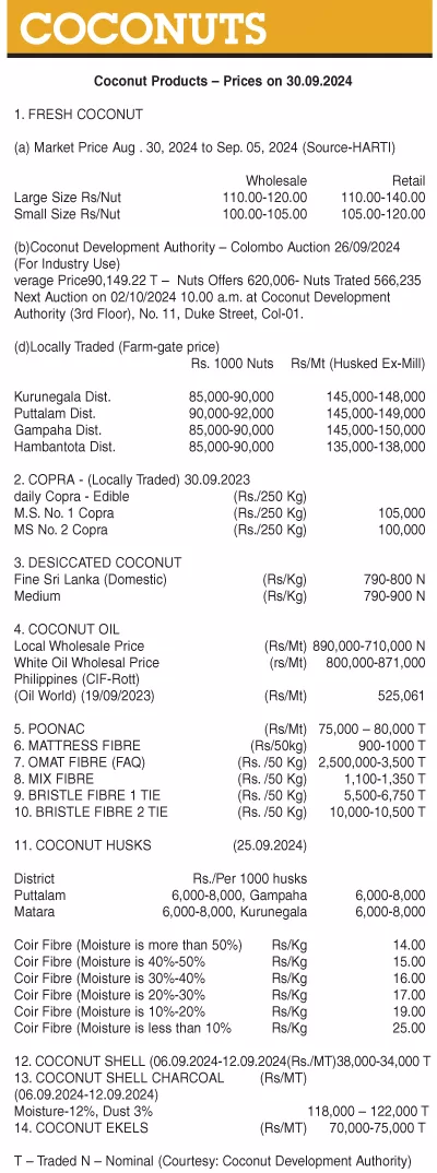 Coconut Products – Prices on 30.09.2024 Business On Sep 30, 2024 16 Coconuts 0 4 Share The post Coconut Products – Prices on 30.09.2024 appeared first on DailyNews. 0 4 Share FacebookTwitterGoogle+ReddItWhatsAppPinterestEmail