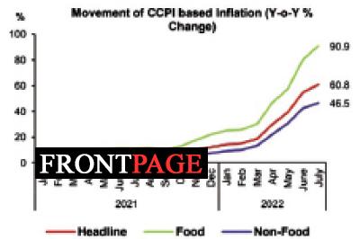 Headline inflation, as measured by the year-on-year (Y-o-Y) change in the Colombo Consumer Price Index (CCPI, 2013=100)1 increased to 60.8% in July 2022 from 54.6% in June 2022.