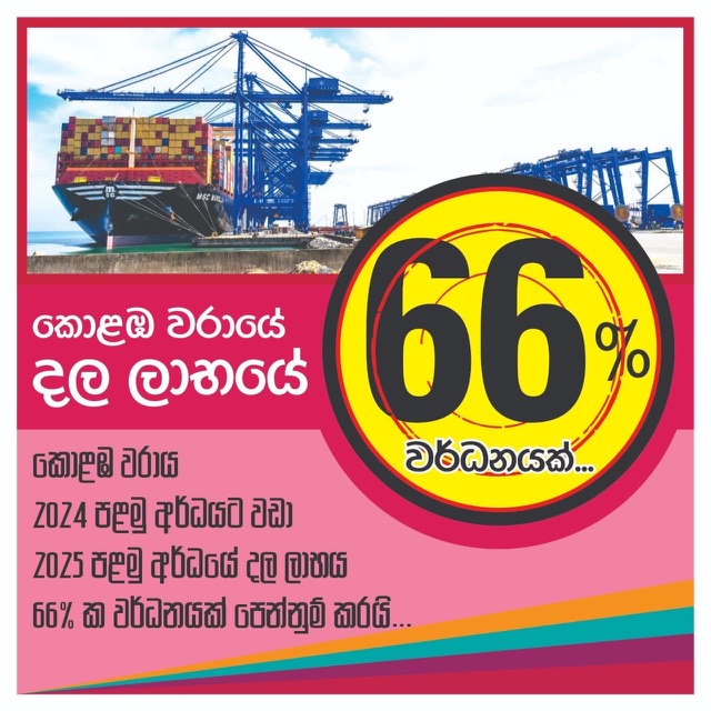 The Sri Lanka Ports Authority (SLPA) has recorded a significant 66% increase in profits during the first six months of 2025 compared to the same period last year.