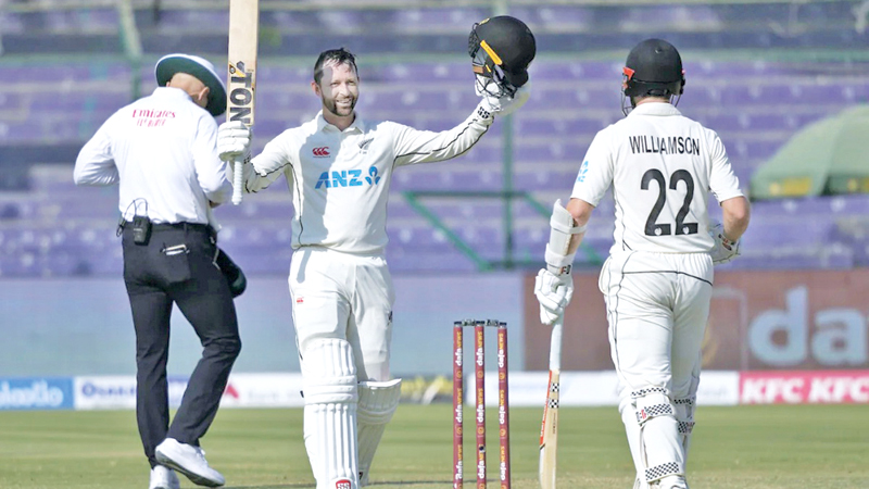 NZ 309/6 (Tom Latham 71, Devon Conway 122, Kane Williamson 36, Tom Blundell 30 n.o., Naseem Shah 2/44, Agha Salman 3/55, Abrar Ahmed 1/101 Vs Pakistan. Cricinfo
