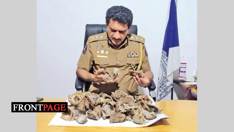 Badulla SSP Sujith Wedamulla inspecting a haul of swallows’ nests worth Rs 1 million seized in Badulla on Wednesday. Picture by Nishantha Abeygunawardena