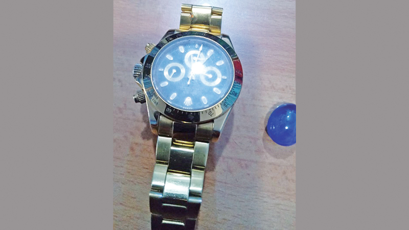 Police found the gem weighing more than 35 carats, a Rolex wristwatch worth around Rs.1.5 million in the possession of the suspects. Police found 20 grams 300 mg of heroin in the possession of the main suspect. A police officer said that the suspects will interrogated to find the property including other gold items found inside the house.