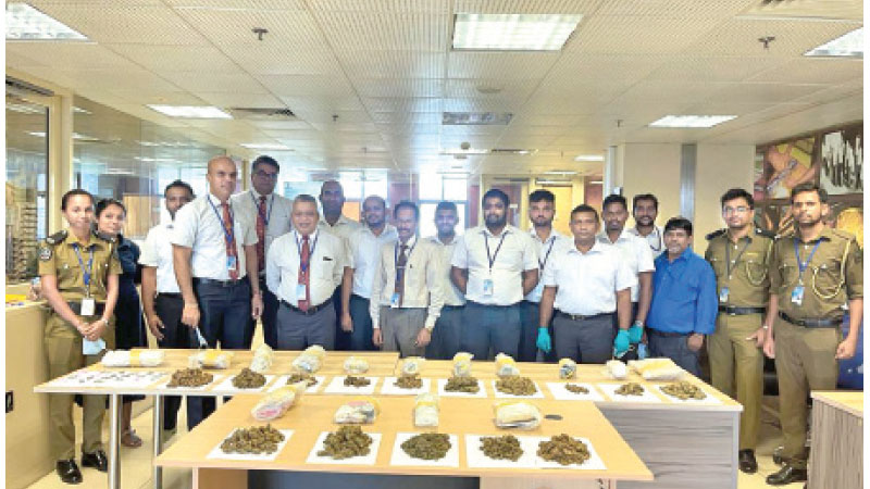 Customs Media Spokesman Sudatta Silva disclosed that there were 207 Methamphetamine pills and 750 gram of Kush.