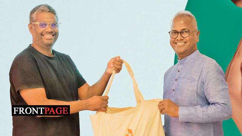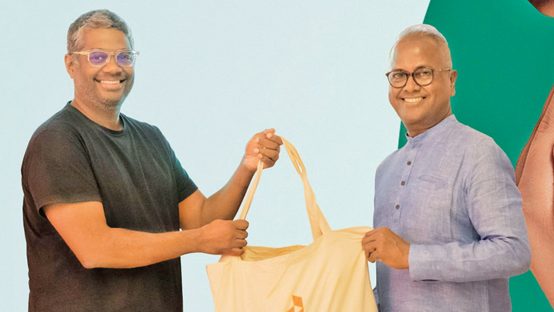 Rakhil Fernando, Managing Director of Daraz Sri Lanka, hands over essentials to Kushil Gunasekera, Founder and Chief Trustee of Foundation of Goodness.