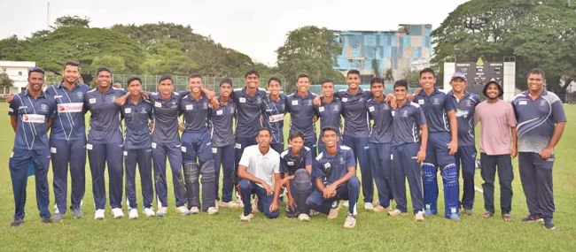 St. Joseph’s College Colombo squad: Lahiru Amarasekara (Captain), Hiran Jayasundara (Vice captain), Abishek Jayaweera, Hirun Matheesha, Heshan Ramanayake, Kenath Liyanage, Deshan Thalahitiyagala, Hiran Ranaweera, Maanasa Madubashana, Dunick Perera, Yenula Dewthusa, Rishma Amarasinghe, Dihen De Silva, Kaven Pathirana, Nimthaka Goonewardena, Nushan Perera, Demion De Silva, Aveesha Samash, Senuja Wakunugoda, Asiri Caldera (Master in Charge), Dilan Ramanayake (Head Coach), Dinal Dhambarage (Asst. Coach), Torin Pitigala (Asst. Coach). (YK)