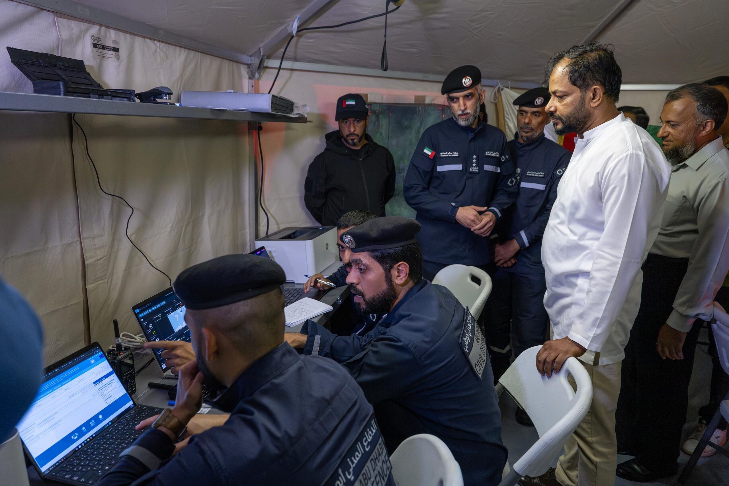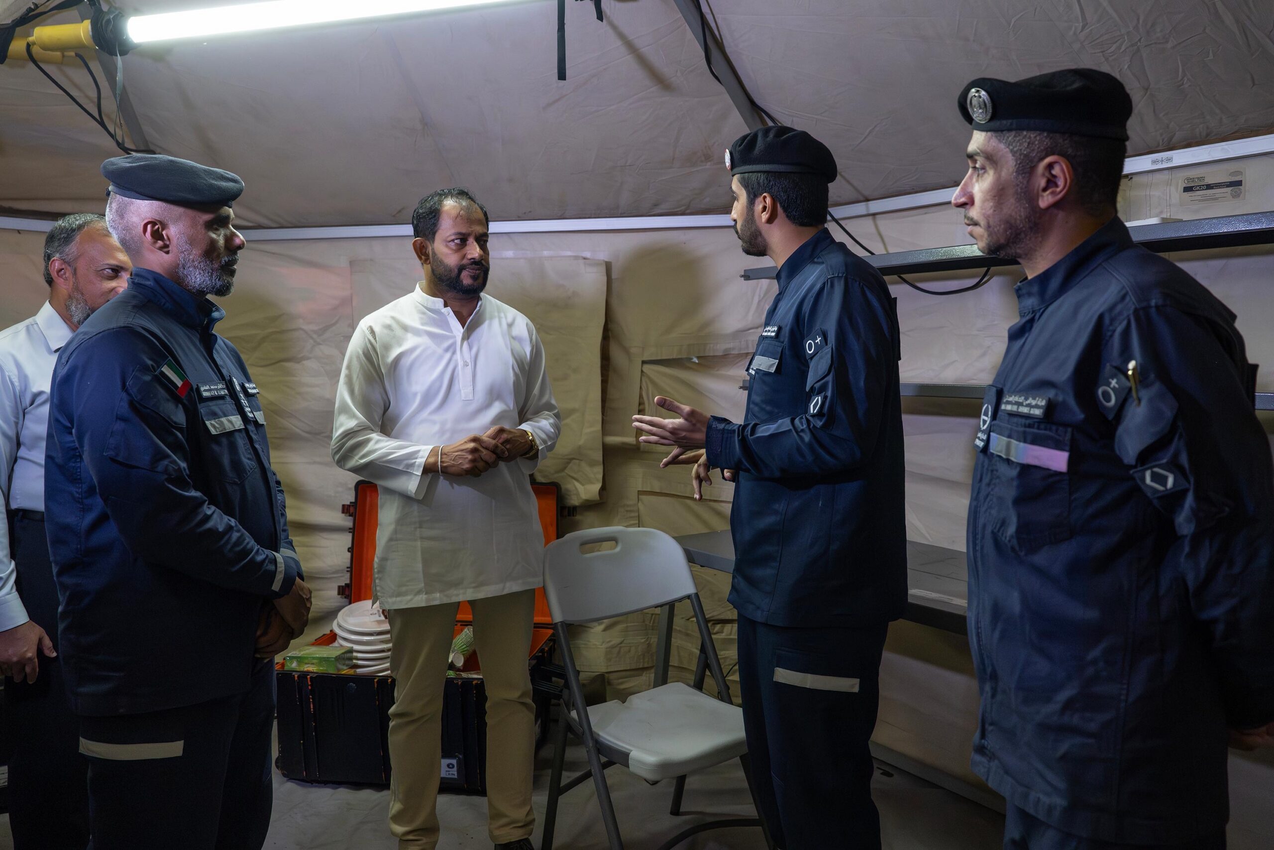 During the visit, the Deputy Mayor was briefed on the progress of search and rescue operations, the teams’ operational workflow, and the ongoing distribution of humanitarian aid. The UAE team comprises representatives from the Joint Operations Command, the UAE International Aid Agency, the Emirates Red Crescent, and the Abu Dhabi Civil Defense Authority.