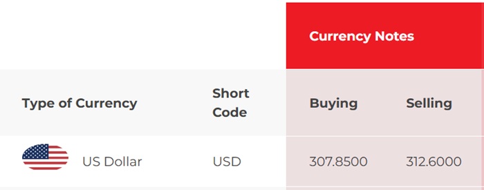 At NDB Bank, the buying rate of the US dollar has increased from Rs. 306.90 to Rs. 307.25, while the selling rate has also increased from Rs. 313.40 to Rs. 313.75.