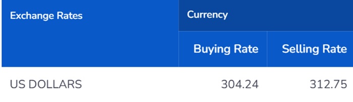At Commercial Bank, the buying rate of the US Dollar has dropped to Rs. 304.36, while the selling rate has also reduced to Rs. 312.75.