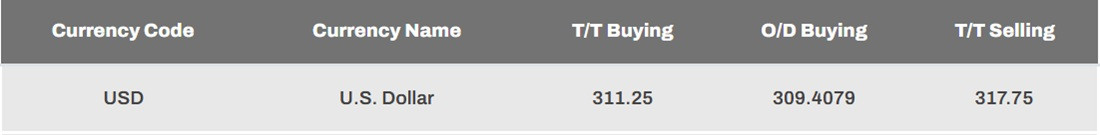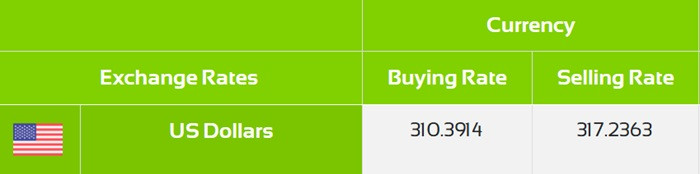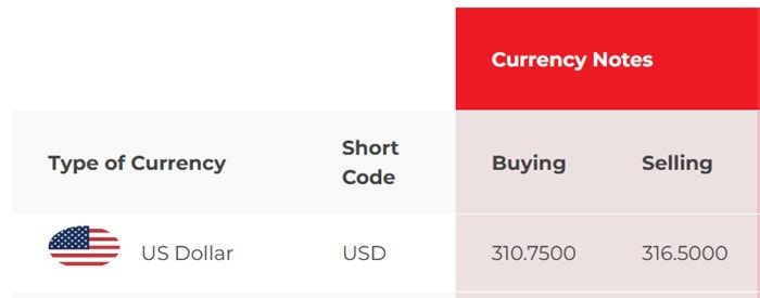 At NDB Bank, the buying rate and selling rates of the US dollar have increased from Rs. 309.50 to Rs. 310.50 and from Rs. 316 to Rs. 317, respectively.