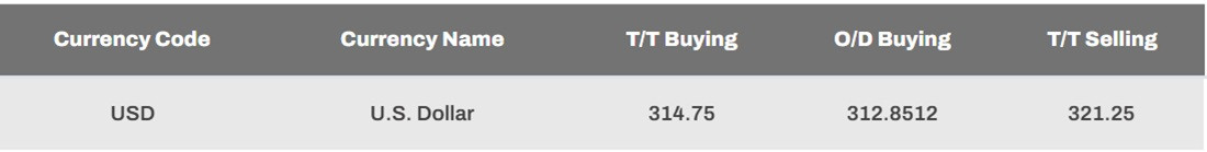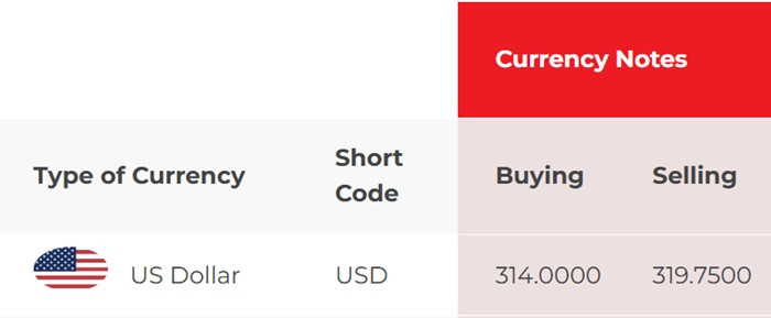 At NDB Bank, the buying rate and selling rates of the US dollar have increased from Rs. 313.25 to Rs. 314.50 and from Rs. 319.75 to Rs. 321, respectively.