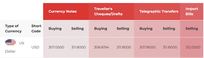 According to the NDB Bank, the buying rate has increased slightly from Rs. 306.25 to Rs. 306.55 while the selling rate increased from Rs. 312.75 to Rs. 313.05.