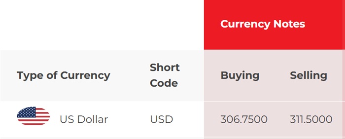According to NDB Bank, the buying rate of the US Dollar remains unchanged at Rs. 306.20, while the selling rate is also unchanged at Rs. 312.70.