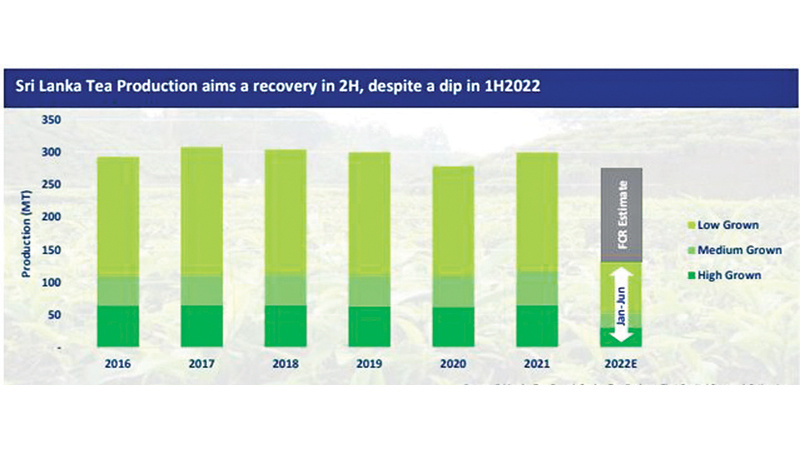 Accordingly, total tea production in all elevations plunged by c. 18% in 1H2022 yielding only 132.1MT compared to 161.7MT produced in 1H2021. Reduction in volume is largely attributable to the absence of required fertilizer, lack of weedicides and other production inputs coupled with fuel and electricity shortages which led to a lack of labour input.