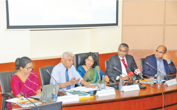 Dr Madura Wehella, former Additional Secretary (Policy, Planning and Review), Ministry of Education; Prof Harischandra Abeygunawardena, Chairman, National Education Commission; Dr Nisha Arunatilake, Director of Research, IPS; Asith de Silva, Senior Manager Social Innovations, Dialog Axiata and Dr Harsha Alles, Chairman, Gateway Grou.