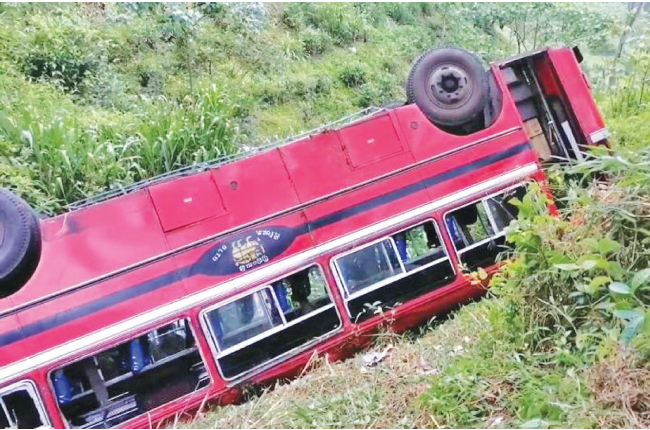 Watawala Hospital doctors said that after initial treatment, they were transferred to Nawalapitiya Primary Hospital for further treatments. Passengers who came there said that there were about 120 passengers on the bus at the time of the accident and the bus was suffering from various mechanical faults on the way.