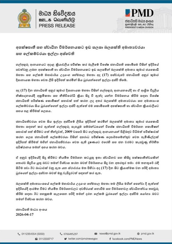 In his resignation letter dated April 17, 2026, Jayakody stated that his decision comes in the context of ongoing investigations related to coal procurement and recent steps taken to appoint a presidential commission of inquiry and involve the Criminal Investigation Department in examining imports since 2009.