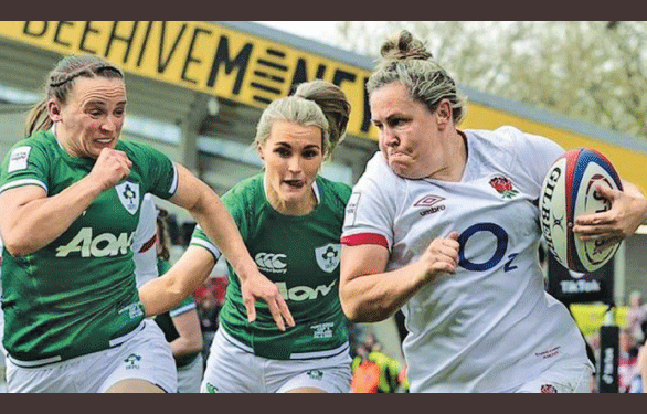 Scarratt’s celebrations went as planned with her home town giving her an incredible welcome as she took to the pitch alone before the anthems. But in the first half, Ireland did not stick to their allotted role of underdogs. It looked as if they might when Lark Davies then Abbie Ward went over for the hosts in the first six minutes. Ward’s score was ruled out for an earlier forward pass from Leanne Infante to Sarah Bern, and from there Ireland slowed England’s charge.
