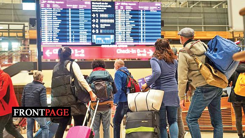 Travellers stand in front of an information board at BER Airport in Berlin, Germany on Saturday. Germany’s incoming Transport Minister is advising people against travelling over Christmas as the country tries to stem the spread of the COVID-19 Omicron variant.