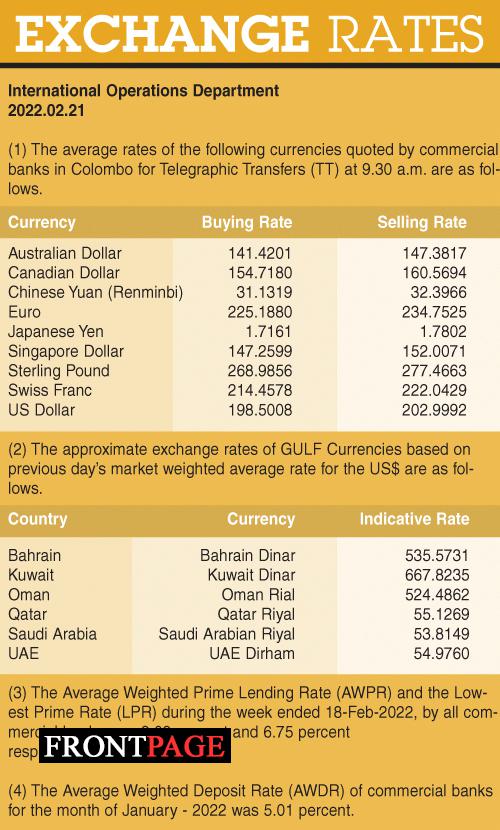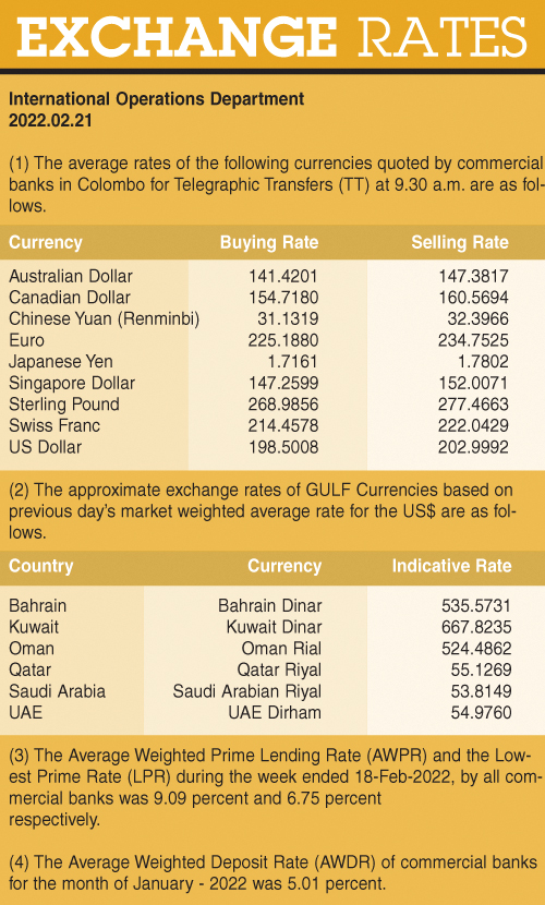 Exchange Rates on 2022.02.21 BusinessLocal On Feb 21, 2022 Exchange Rates on 2022.02.21 0 42 Share Business Tags: Print Edition Tuesday, February 22, 2022 – 01:00 0 42 Share FacebookTwitterGoogle+ReddItWhatsAppPinterestEmail