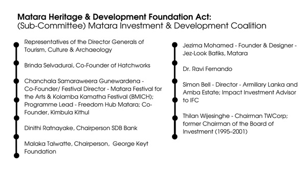 Accordingly, public and private sector appointees have been made to both the Drafting Committee and its sub-committee – the Matara Development and Investment Coalition.