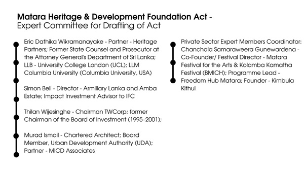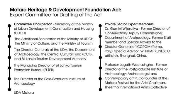 An Expert Committee and sub-committee have been appointed to commence drafting a Heritage & Development Foundation Act for Matara Fort & City.