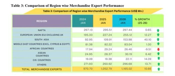 The encouraging performance reflects broad-based growth across key export sectors, improving global demand conditions, and sustained national efforts to enhance export competitiveness at the outset of the year.