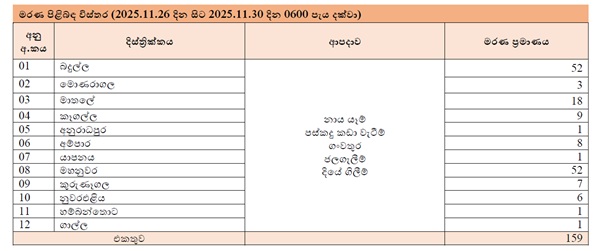 According to the Disaster Management Centre, 159 deaths have been reported in 12 districts in the four days between 26-30 November.