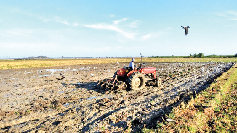 A farmer tilling the paddy land to prepare for Maha cultivation. Picture by I.L.M.Rizan.