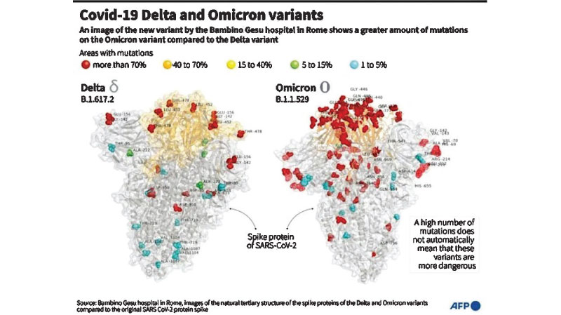 ITALY, SOUTH AFRICA: The new COVID variant Omicron has many more mutations than the Delta variant, according to a first “image” of this new variant initially detected in South Africa, produced and published by the prestigious Bambino Gesu hospital in Rome.