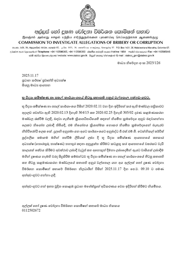 Walpola is said to have made the appointment without obtaining approval from the Office Management Committee and providing her with financial benefits, including salaries and other allowances. (Newswire)