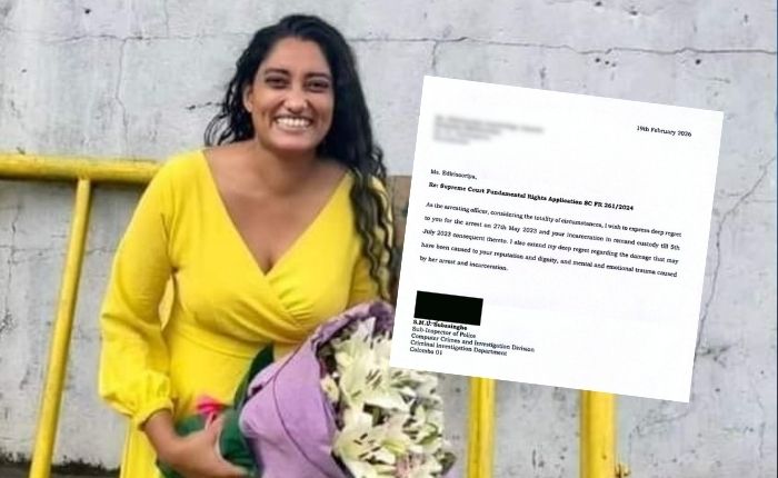 Former Officer-in-Charge (OIC) of the Cyber Crime Investigation and Intelligence Analysis Unit of the Criminal Investigation Department (CID), Mr. M.M.U. Subhasinghe, today expressed his regret in writing to civil activist and comedian Ms. Nathasha Edirisooriya at the Supreme Court regarding her arrest under the ICCPR Act.