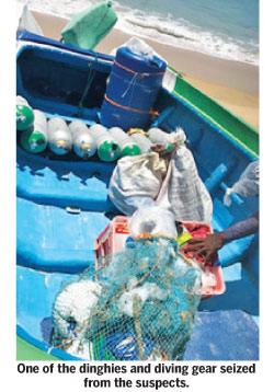 The persons held in the operation were identified as residents of the Periyapadu, Kokilai and Pulmoddai areas, aged between 24 to 45. The four individuals along with their dinghies and fishing gear were handed over to the Kuchchaveli Fisheries Inspector for further action.