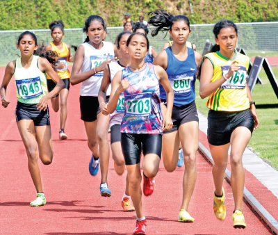 U.M. Sansala of Ambagamuwa MV (2703) finished first in the girls’ Under 15 800m final event. M.G.T. Abhiseka of Dambulla National School and Dewmini Chamodya of Sujatha MV Badulla won second and third places.