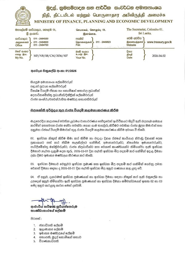 In a statement, the Ministry said the decision was taken by the Cabinet as part of broader measures to manage state expenditure amidst the ongoing energy crisis and fiscal constraints.