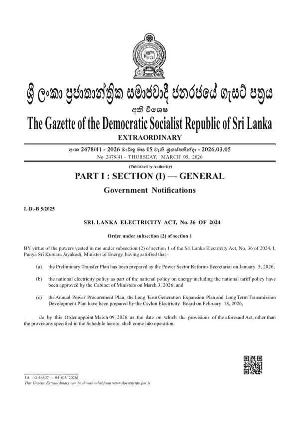 Gazette: https://documents.gov.lk/view/extra-gazettes/2026/3/2478-41_E.pdf (Newswire)