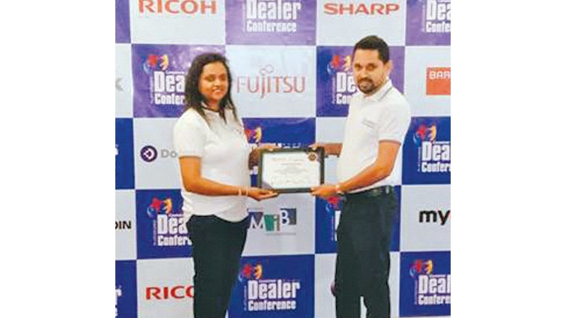 Executive Director, Gestetner Anusha Geethanjalee presenting an award