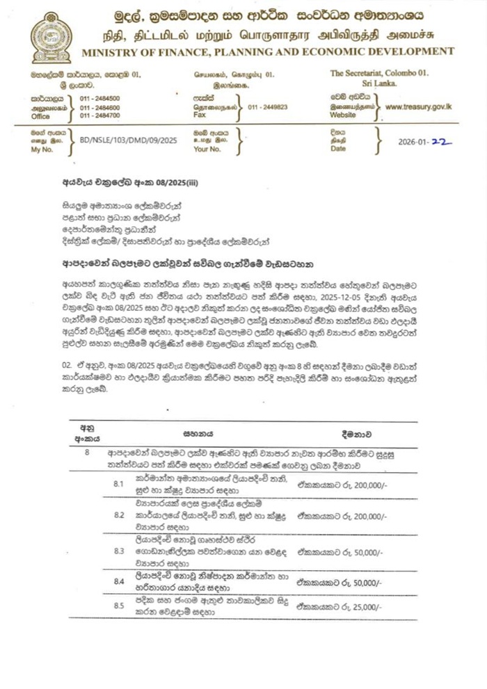 The Government has issued a new special circular aimed at restoring livelihoods disrupted by adverse weather conditions and providing relief to businesses affected by recent disasters.
