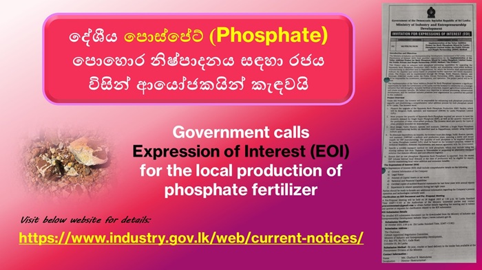 Senior Advisor to the President on Science and Technology, Professor Gomika Udugamasooriya, says the government officially launched an investor call this week for the domestic production of phosphate fertilizer.
